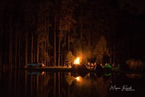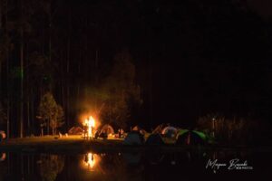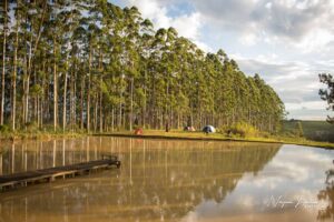 O sítio conta com uma estrutura de hospedagem, com chalés e espaço para camping.